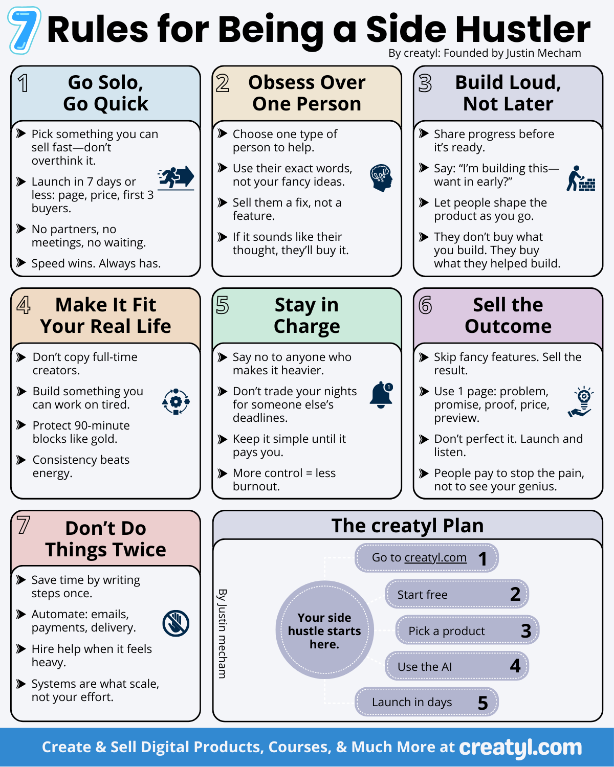This infographic lays out the seven rules on one page, making it easier to stay focused on what matters and avoid adding unnecessary weight to your side hustle.