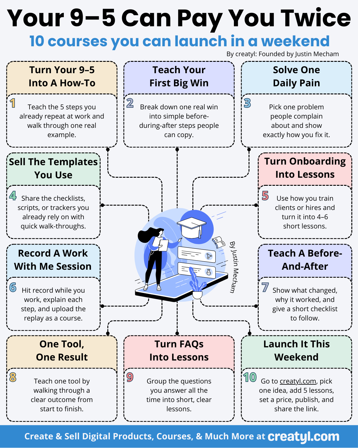 This article is a deep breakdown of 10 weekend-ready course ideas hiding inside your workweek, along with real workplace examples, practical steps, and a clear way to ship without overthinking.