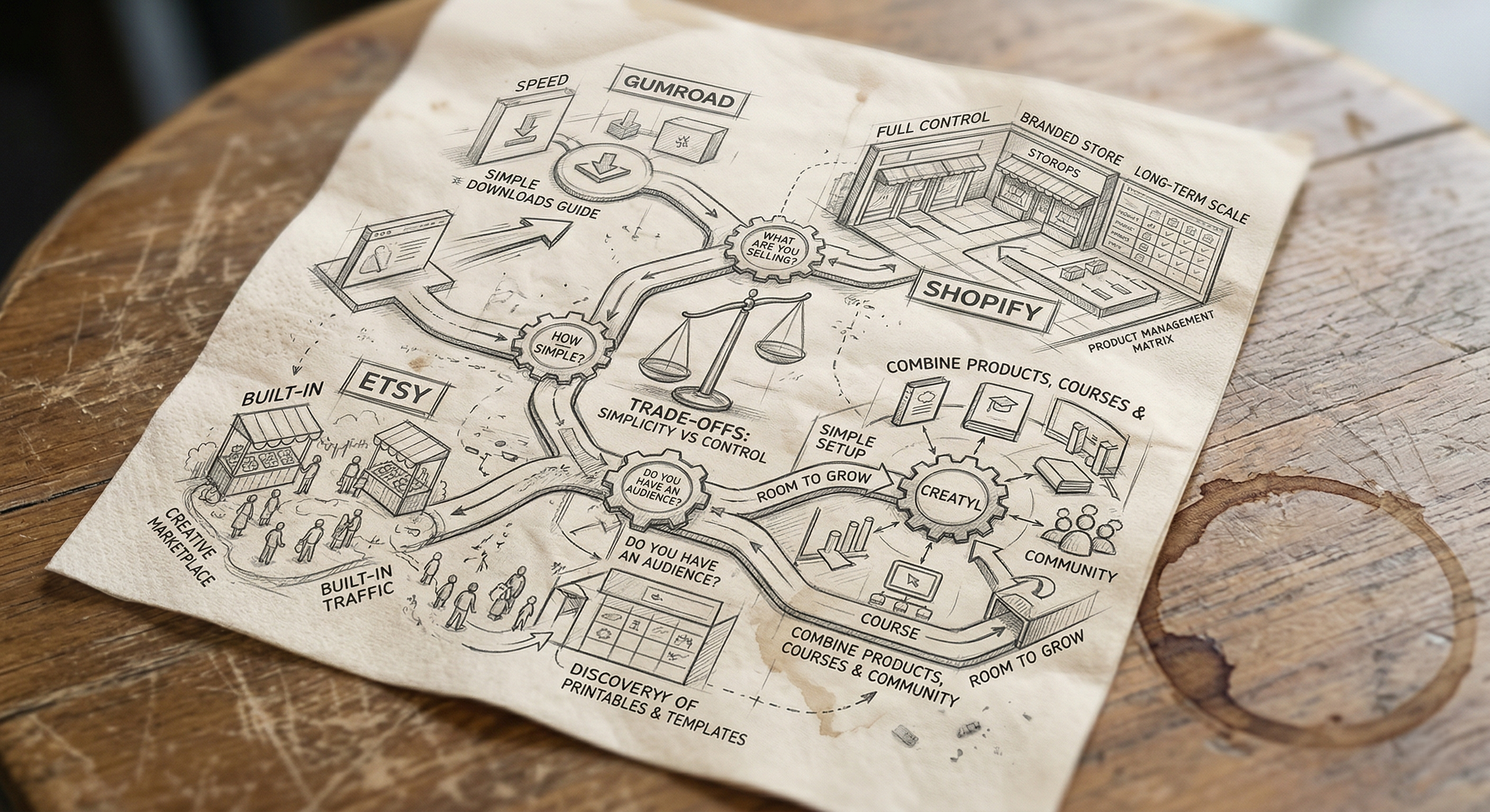 This guide breaks down the most common platforms used to sell digital products and helps you understand how to choose based on real use, not hype.