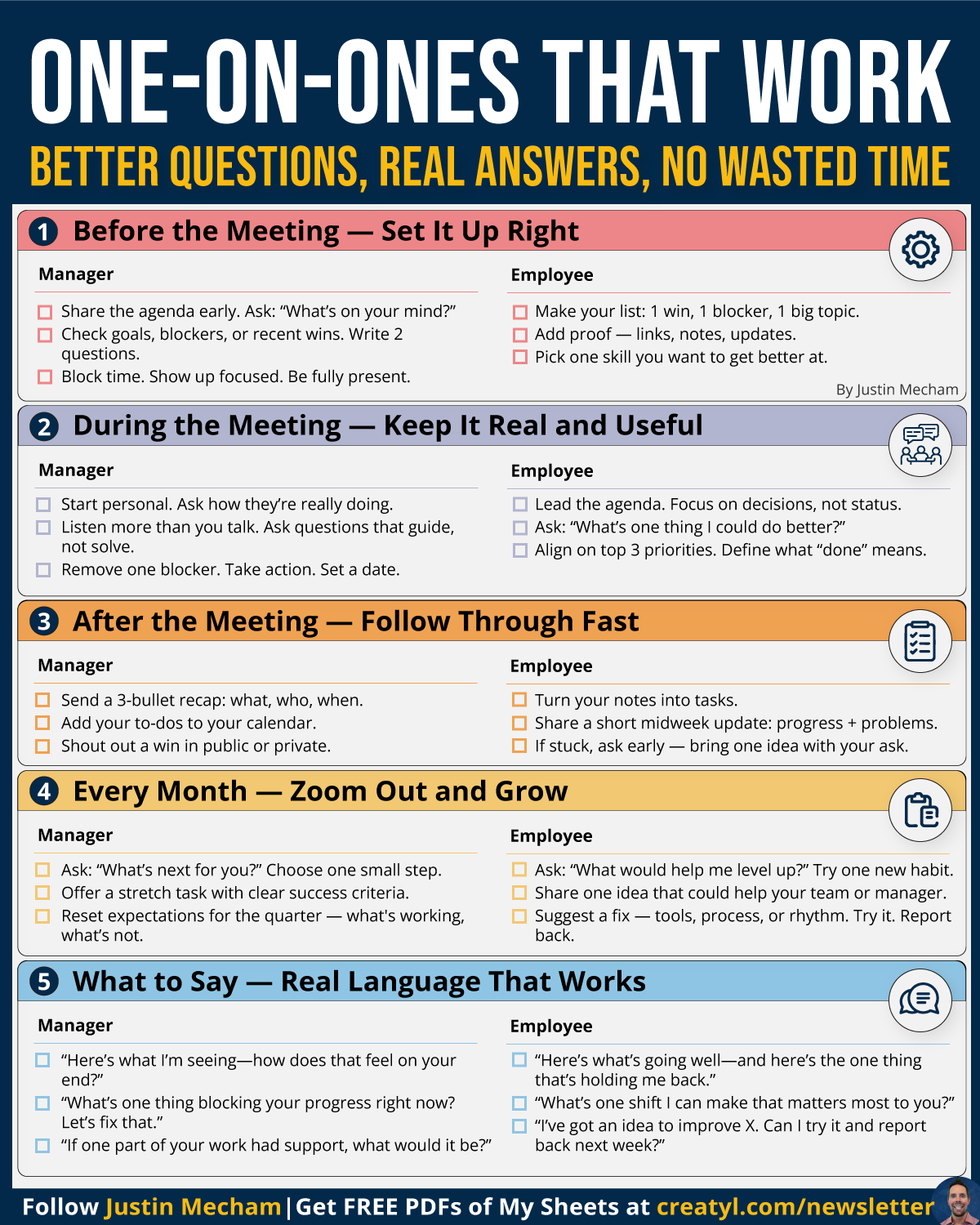 If you want a clear, step-by-step guide for running better one-on-ones, download the infographic as a PDF.