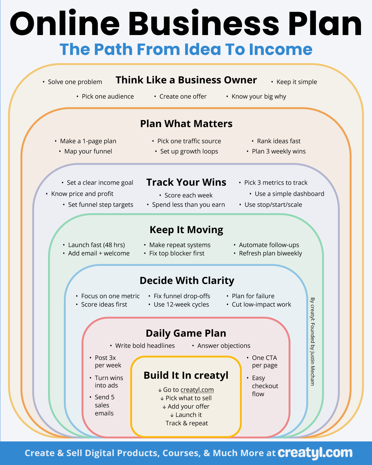 A no-frills system that anyone can use to go from idea to income, without getting buried in complexity.