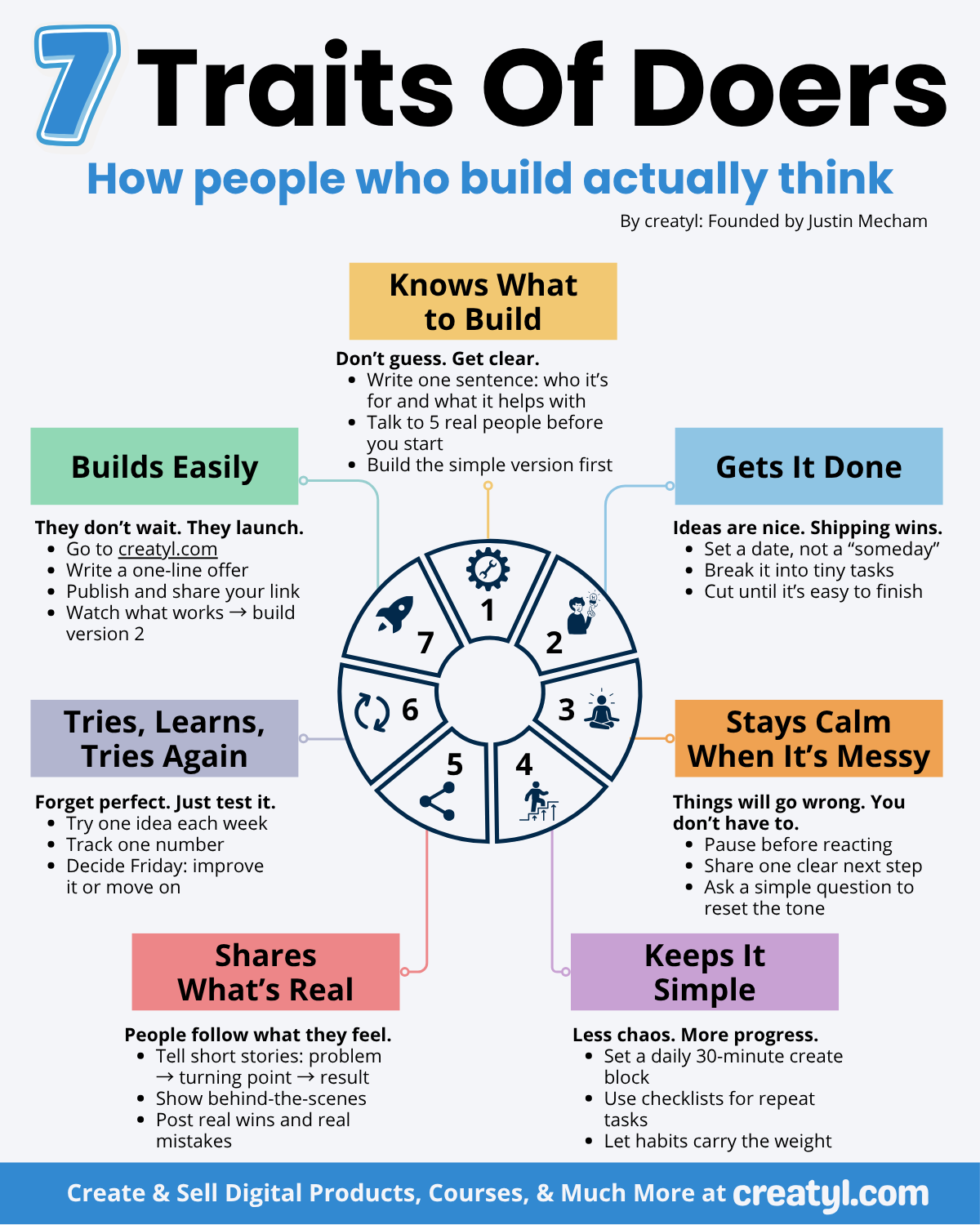 If you want to keep these 7 traits close—so you can actually use them when things feel stuck—download the full “7 Traits of Doers” infographic in a clean, printable PDF format.