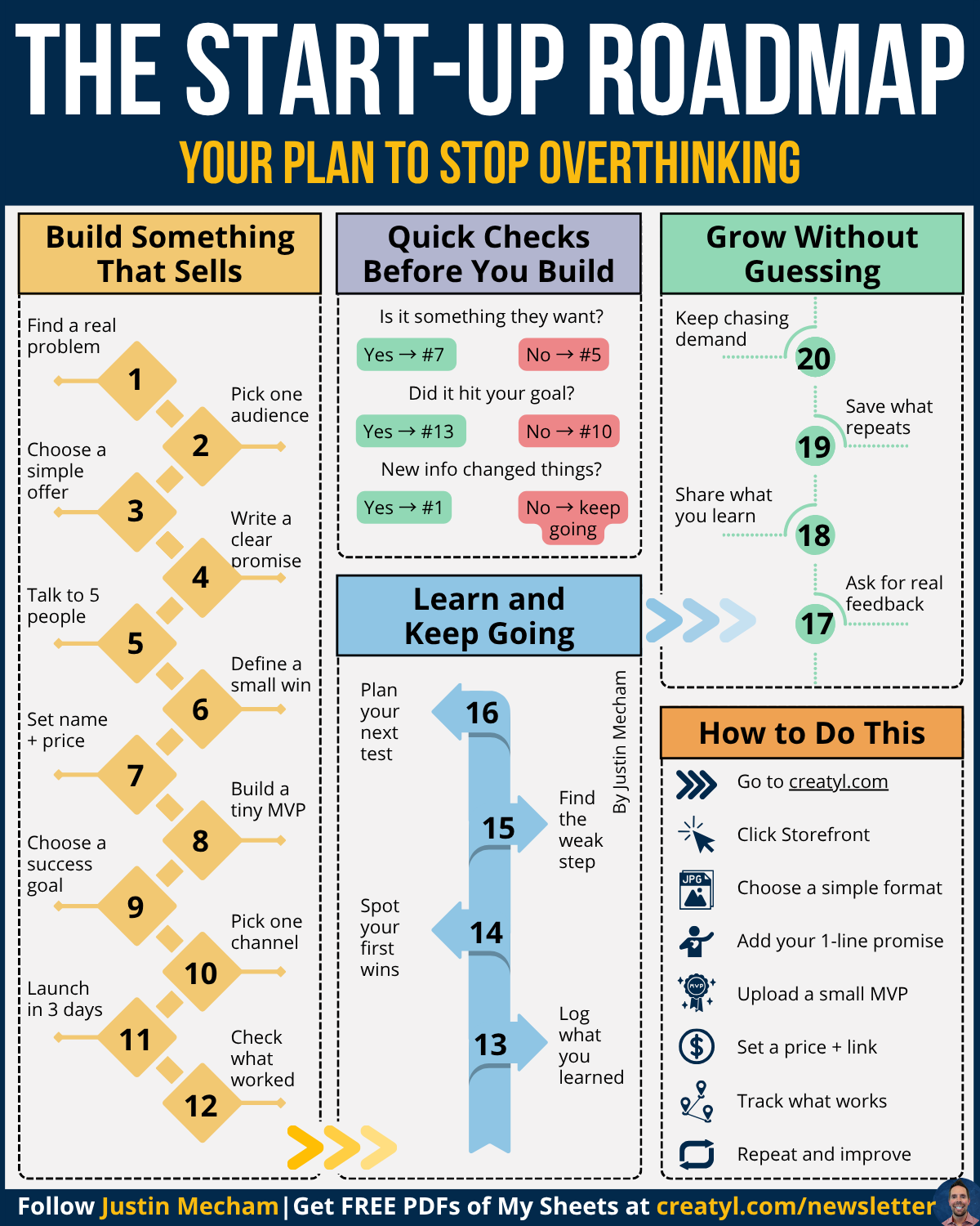 You can turn this into a simple, repeatable rhythm — the same system used by lean teams, solopreneurs, and startup founders who actually ship things instead of just talking about them.